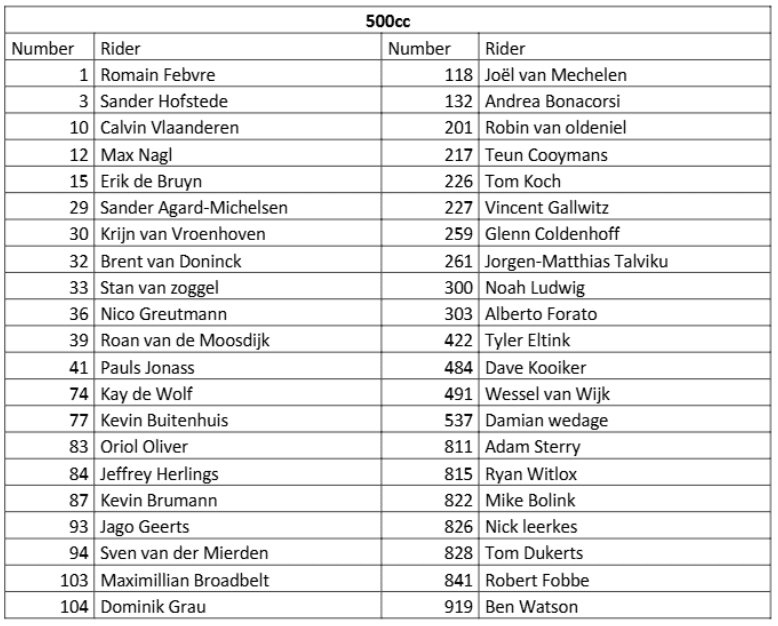 As we see a lot in European races of late, just 21 450 riders on the grid. Times are tough in Europe at the moment, when it comes to motocross races. Also the schedule below.