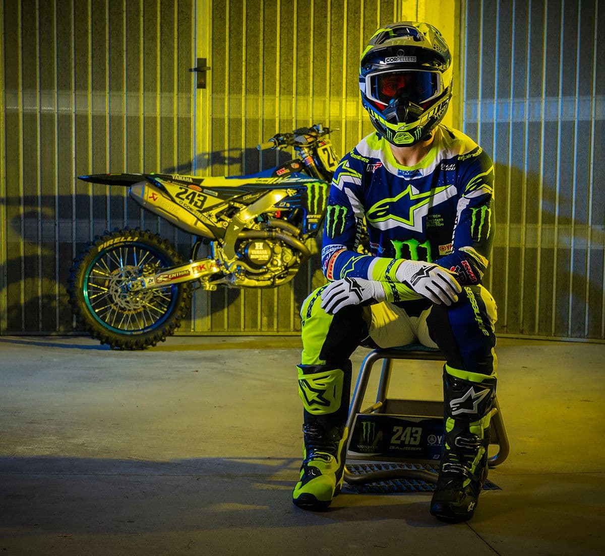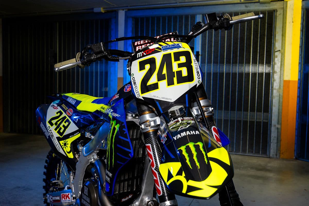 Yesterday morning, Belgian photographer, Bavo Swijgers was put to work by Yamaha to produce this very cool Rossi look with the bike and gear of five time world champion, Tim Gajser. Its something Yamaha often do with their riders and it is a very nice look.
